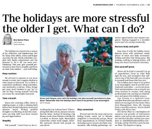 A:The holidays are meant to be a season of joy, reflection, and togetherness — but for many older adults, stress and fatigue can enter the mix. Hectic schedules, coupled with family expectations and the pressure to “do it all” can seem overwhelming. This year, give yourself permission to slow down, simplify, and focus on what truly matters — your well-being.