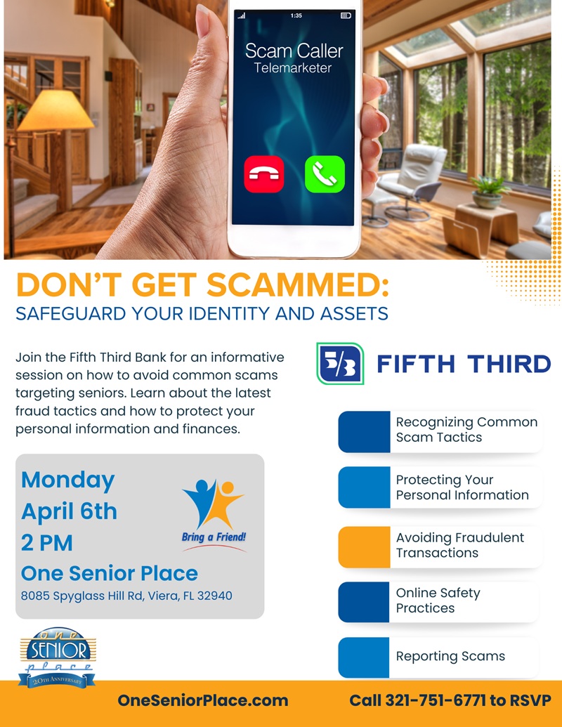 Join Fifth Third Bank for an informative session on how to recognize scams, protect your personal and financial information, and take steps to safeguard your identity and assets.