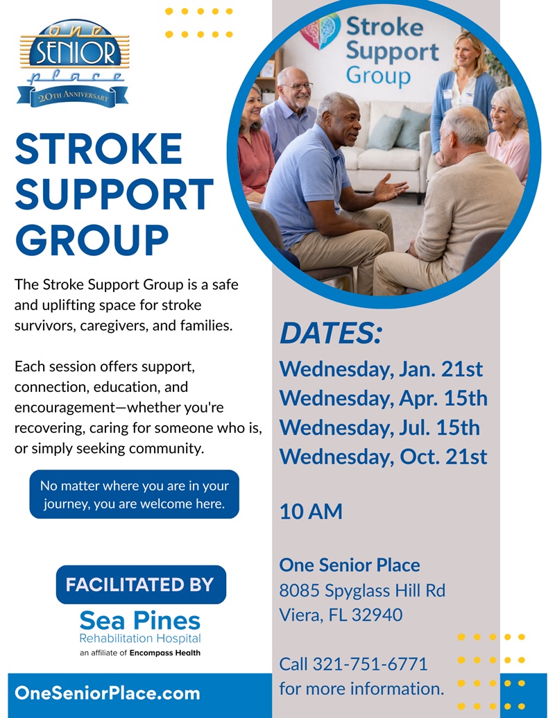 The Stroke Support Group, facilitated by Sea Pines Rehabilitation Hospital, is a safe and uplifting space for stroke survivors, caregivers, and families. Each session offers support, connection, education, and encouragement—whether you’re recovering, caring for someone who is, or simply seeking community. Expect meaningful conversations, helpful resources, expert insights, and the comfort of being surrounded by people who truly understand. No matter where you are in your journey, you are welcome here.