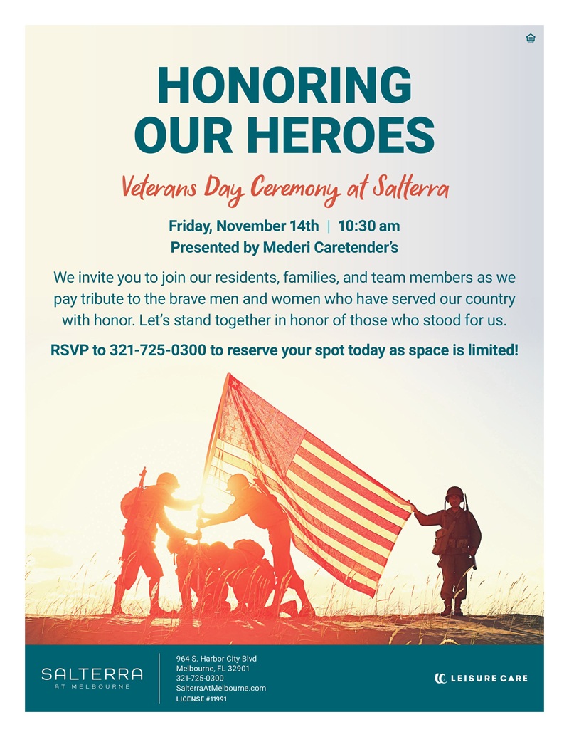 Salterra at Melbourne invites you to join them as they celebrate the brave men and women who have served our country with honor.